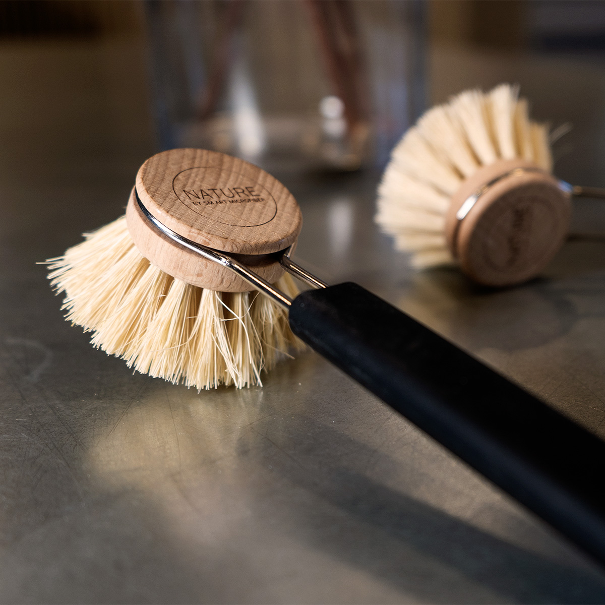 Borsthuvud i FSC-märkt trä med Tampico brost ( naturfiber). Effektiv för kastruller och stekpannor. Borsthuvudet är utbytbart, det görs enkelt genom att dra av silikondelen från handtaget för att lossa borsthuvudet.